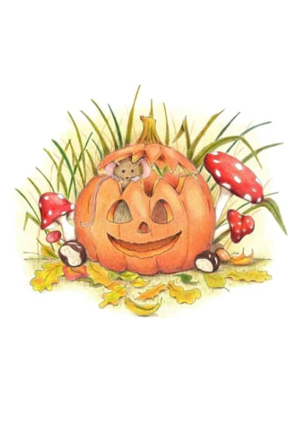 Anillustration Ansichtkaart Muisje in pompoen