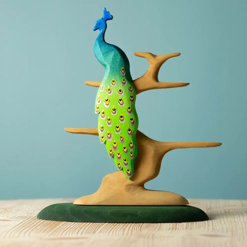 Deze mooie handgemaakte pauw van Bumbu is 21 cm groot. De pauw kan heel goed op een boom worden geplaatst.