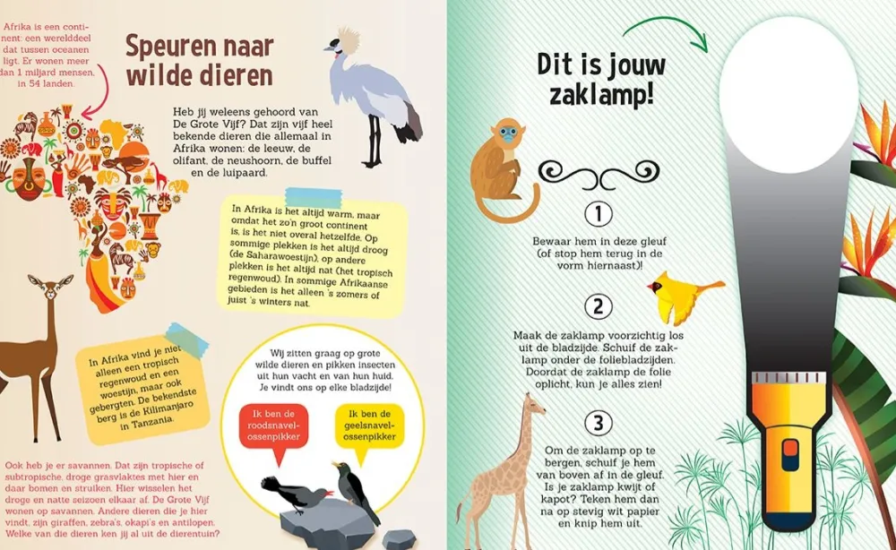 Specificaties voor: Zaklampboek Speuren naar wilde dieren