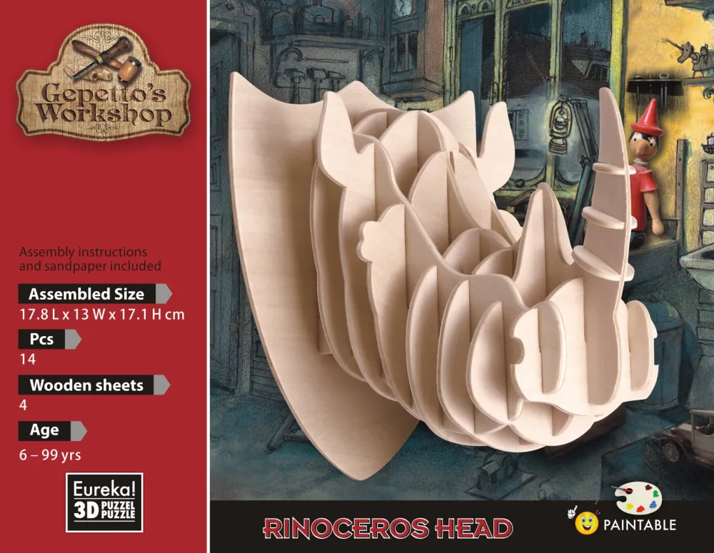 Eureka 3D Hout Model Gepetto´s Rinoceros Head