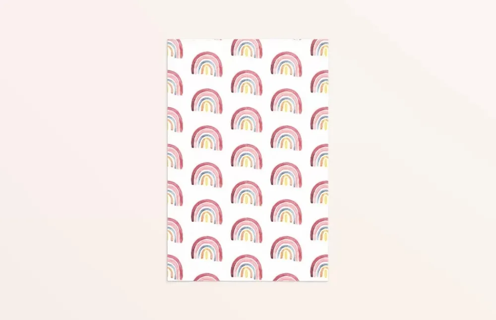 Kaart met een print van regenbogen, geschilderd met waterverf. De kaart is gedrukt op mooi stevig papier, dus je kan het ook neerzetten ter decoratie.