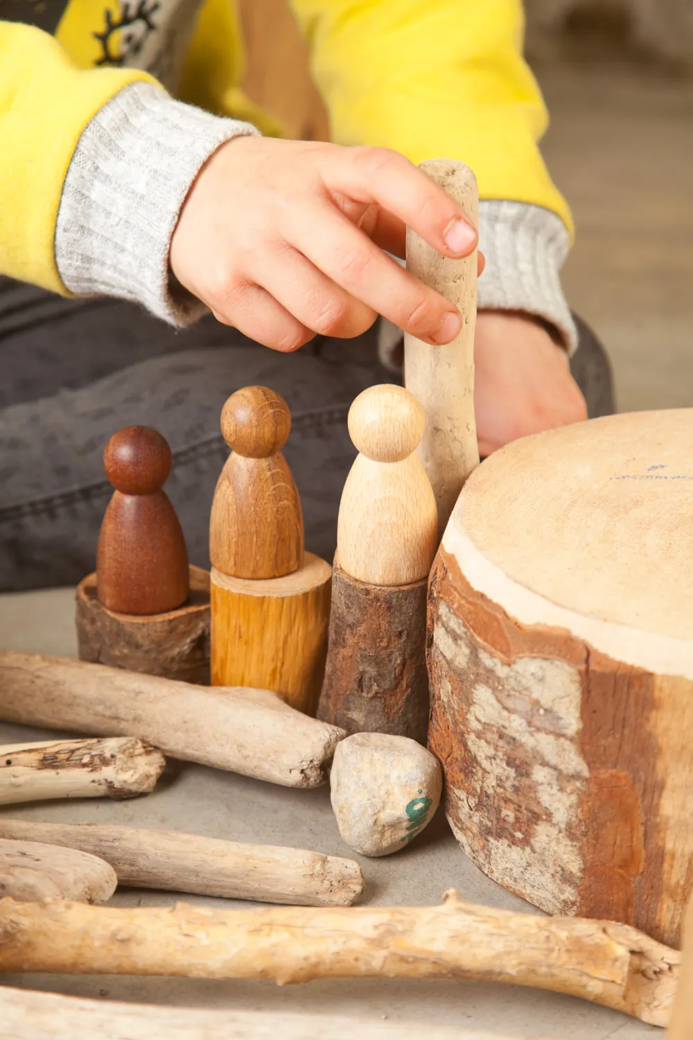 3 houten Nins of poppetjes van Grapat in drie verschillende houtsoorten: beuken, eiken en sapeli.