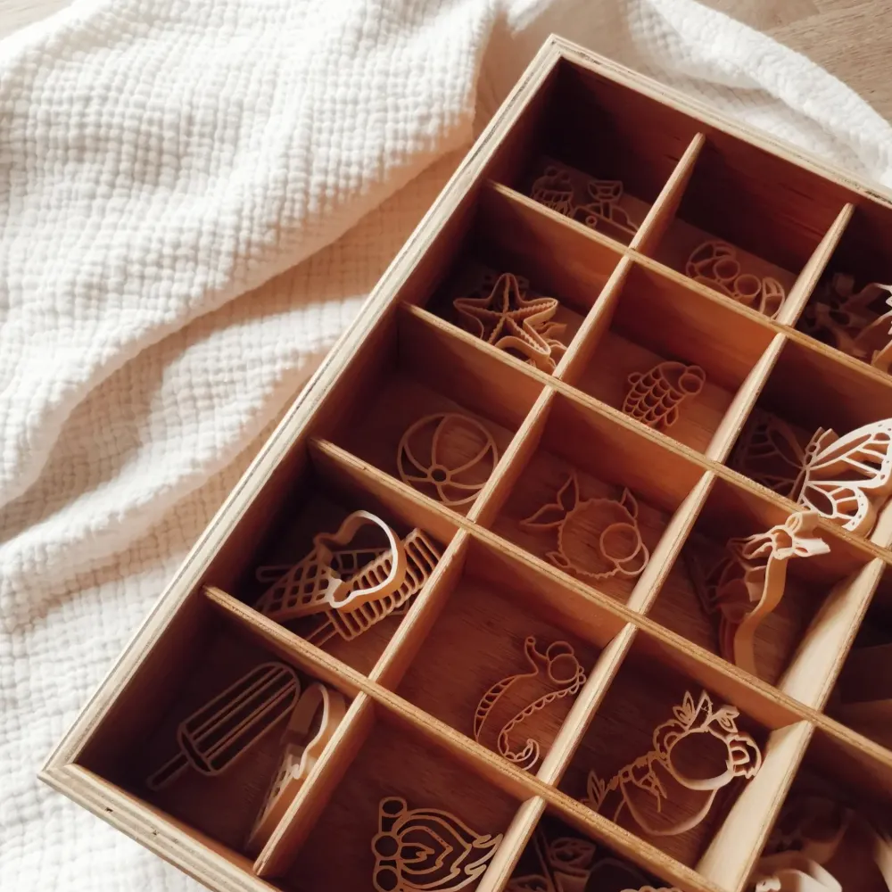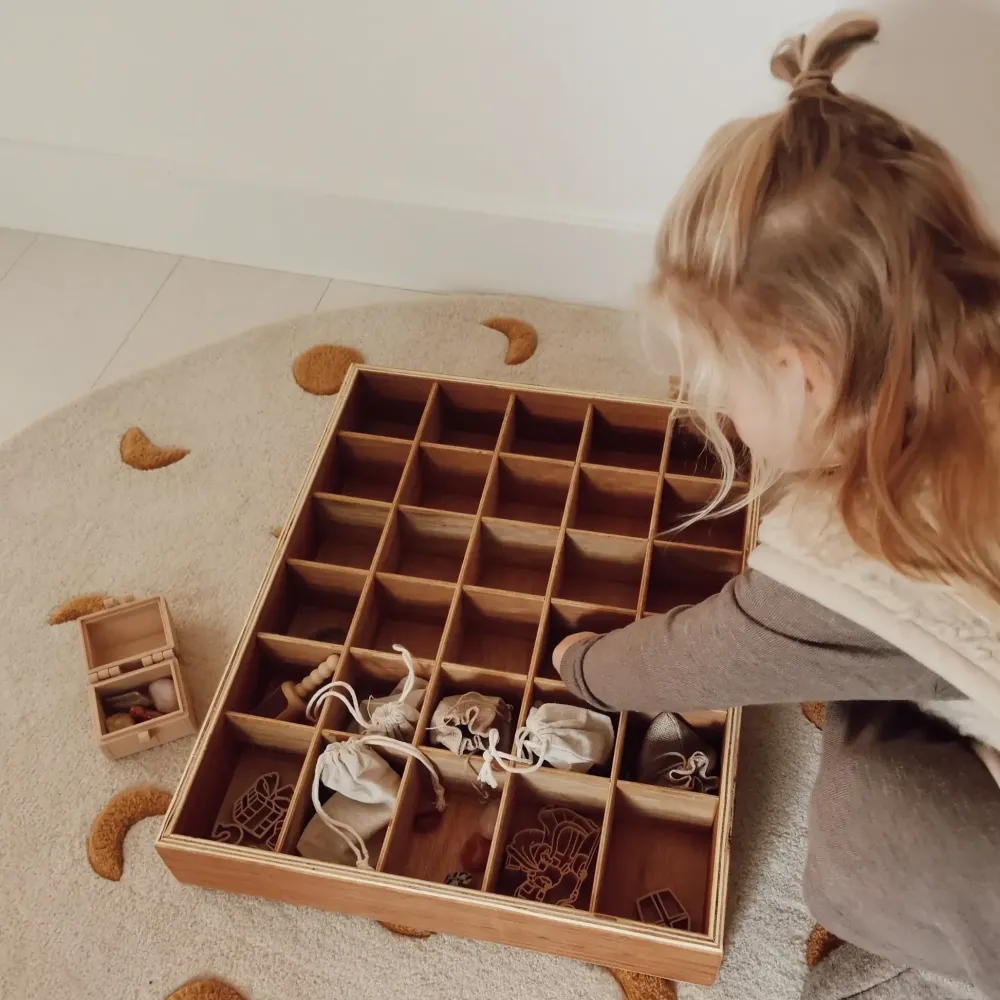 Deze houten sortbeerbak is 40x50x7 cm groot.