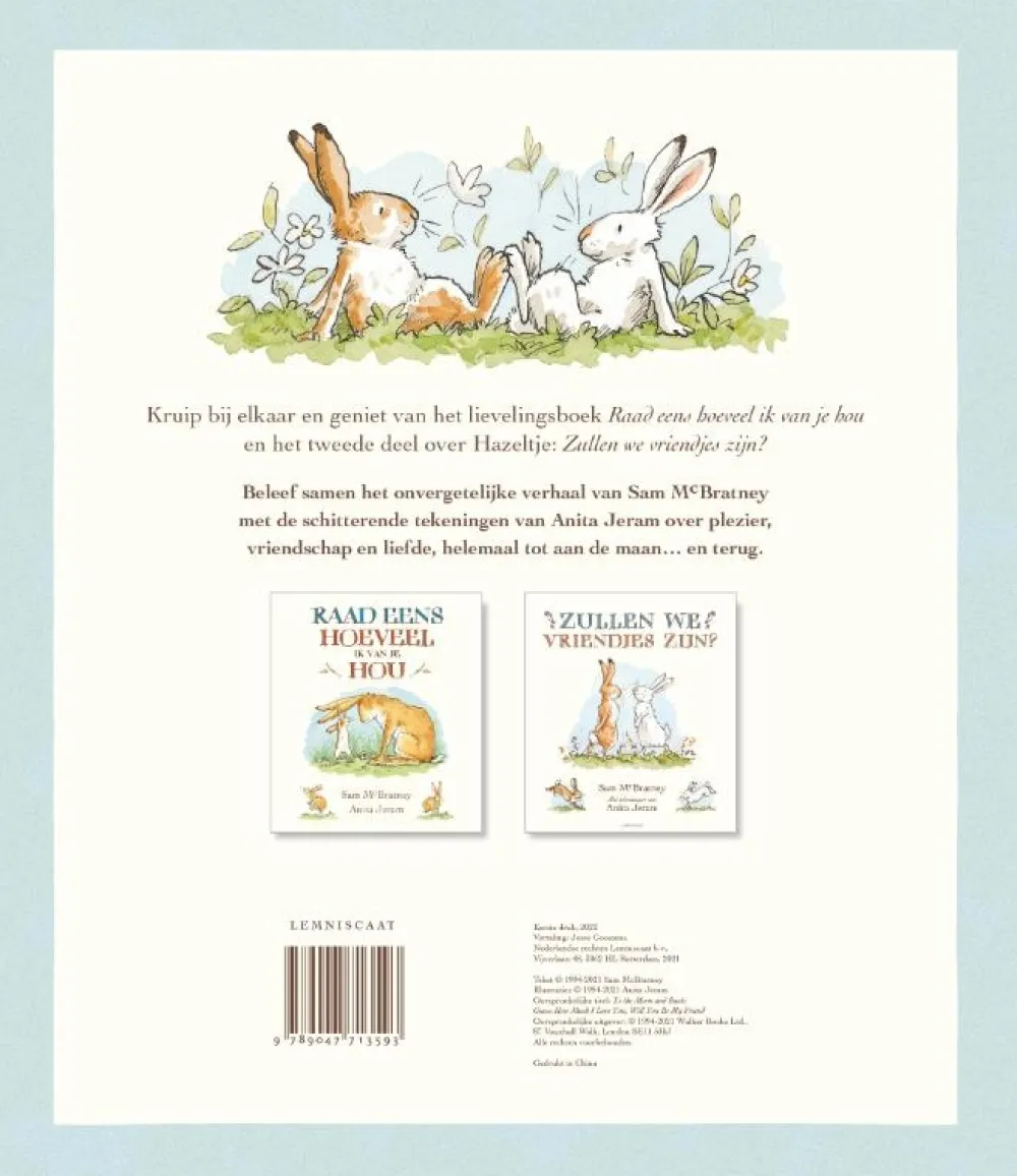 Raad eens wat een prachtige cassette dit is? Wat moeten we hier nog over zeggen? De twee mooiste klassieke prentenboeken om te geven aan degene van wie je houdt: Raad eens hoeveel ik van je hou en Zullen we vriendjes zijn?