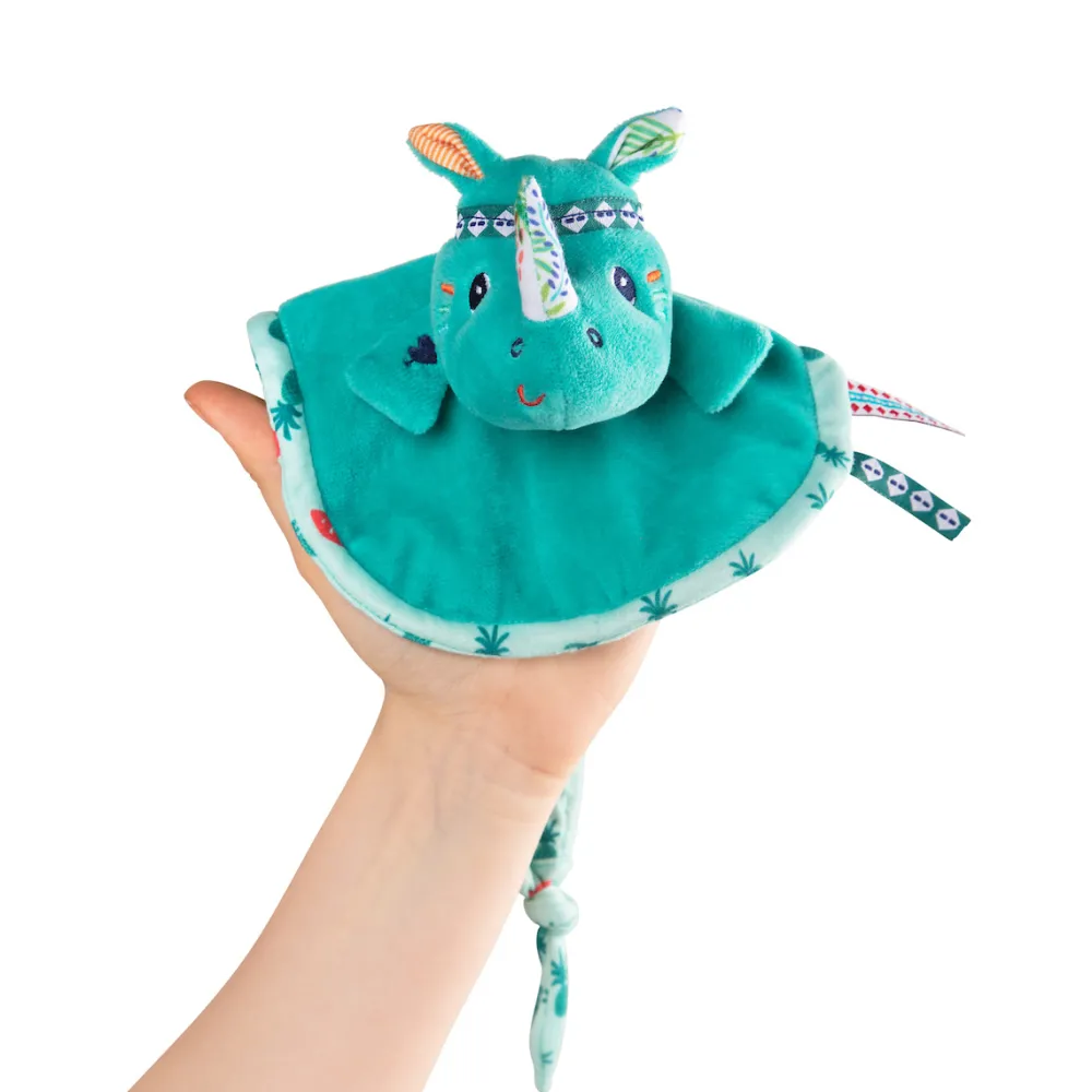 Knuffeldoek Marius van Lilliputiens is een zachte rustgevende knuffel. Het hoofdje is een vingerpopje waardoor ze met deze doek kunnen spelen en zo worden de tastzin en fijne motoriek gestimuleerd. Afmeting: 26x18cm.