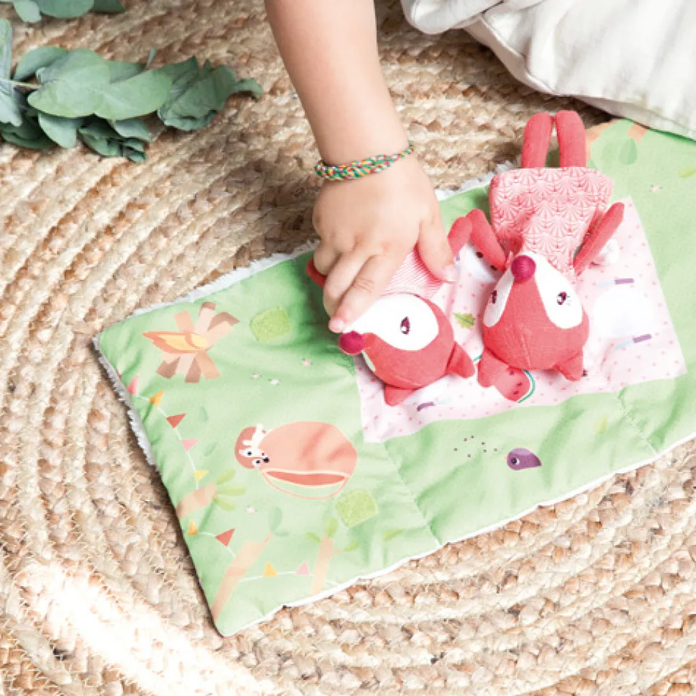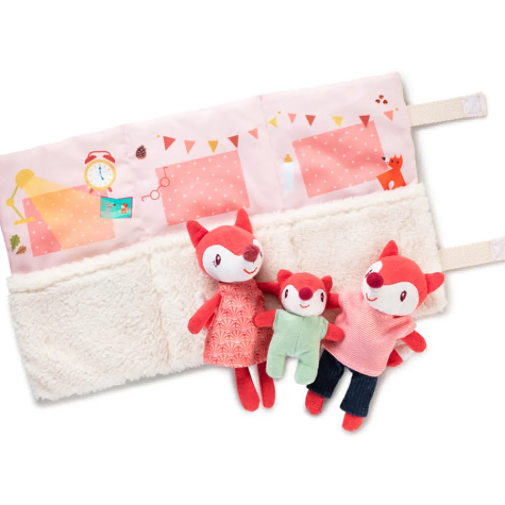 Wat een schattig vosjesgezin deze familie van Alice van Lilliputiens. Het matje en de figuurtjes kunnen gemakkelijk overal mee naar toe genomen worden. Zo kan de kleine telkens weer nieuwe avonturen beleven met deze speelset. De kleertjes van de poppetjes
