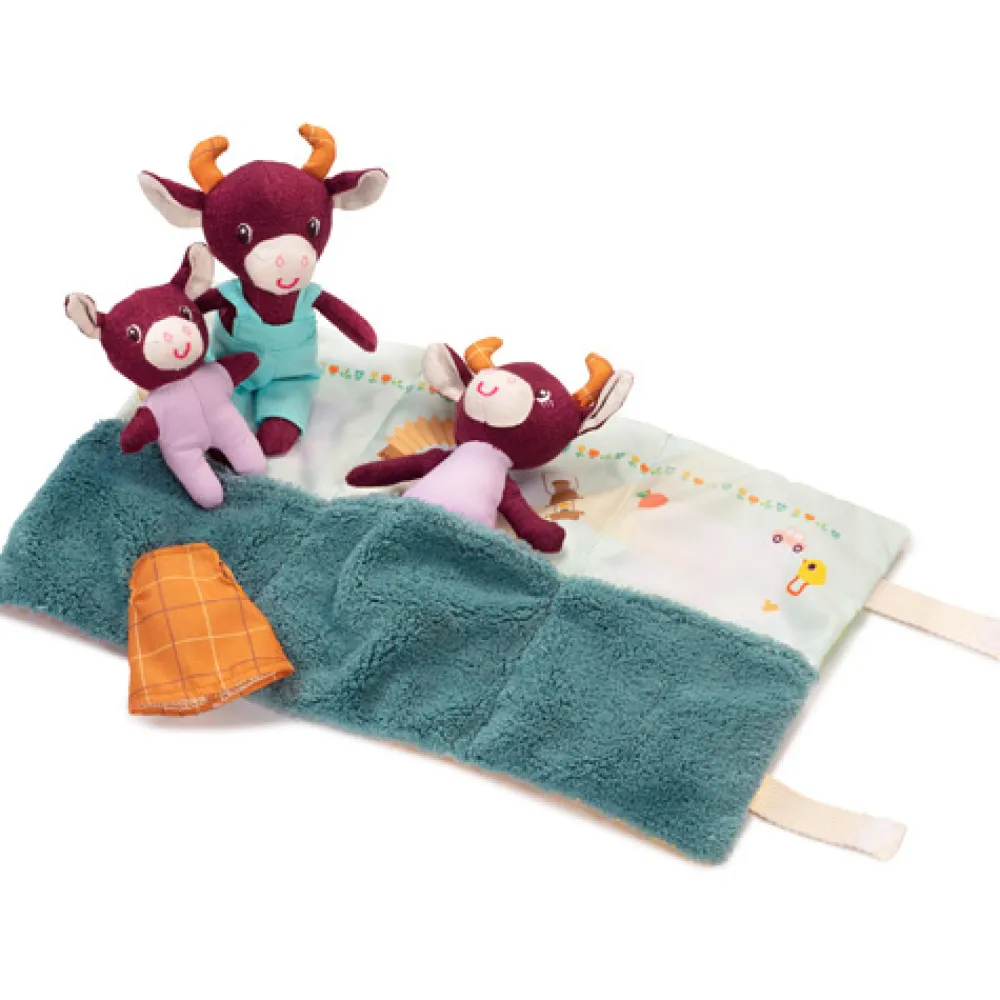 Wat een schattig koeiengezin deze familie van Rosalie van Lilliputiens. Het matje en de figuurtjes kunnen gemakkelijk overal mee naar toe genomen worden. Zo kan de kleine telkens weer nieuwe avonturen beleven met deze speelset. De kleertjes van de poppetj