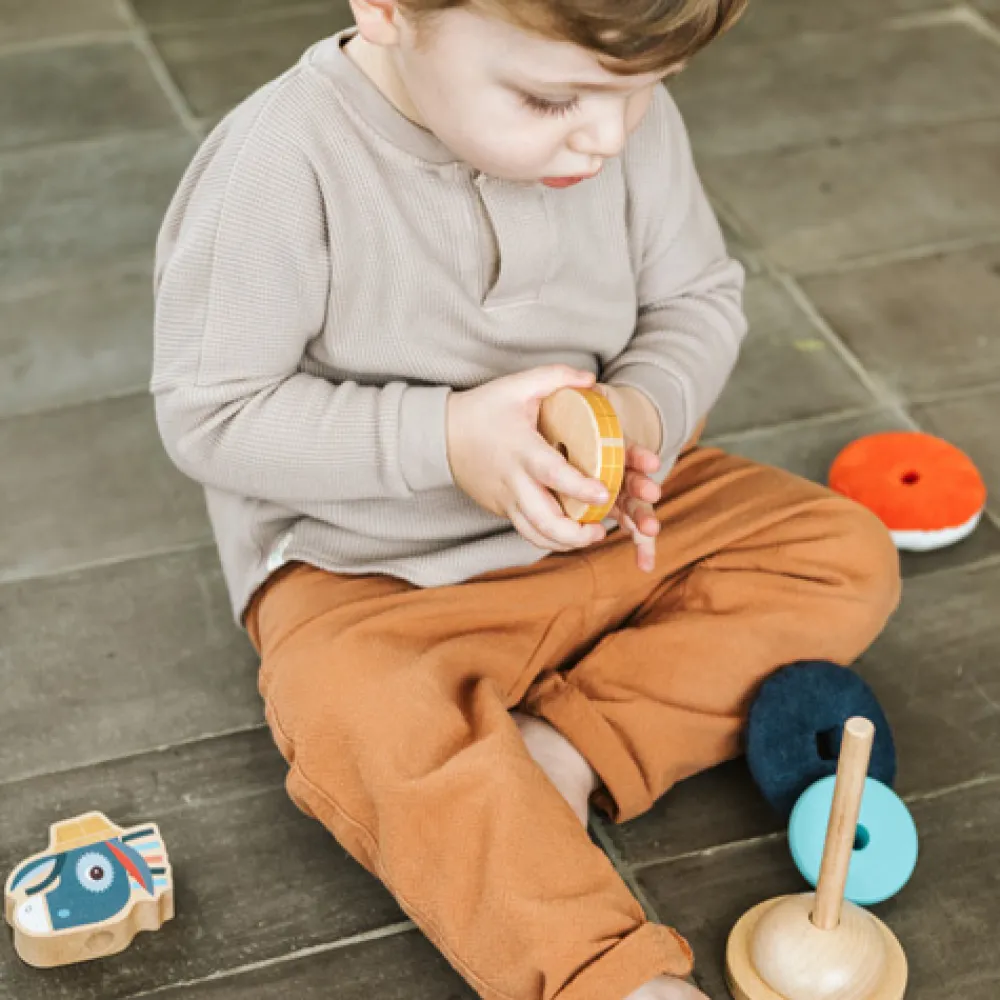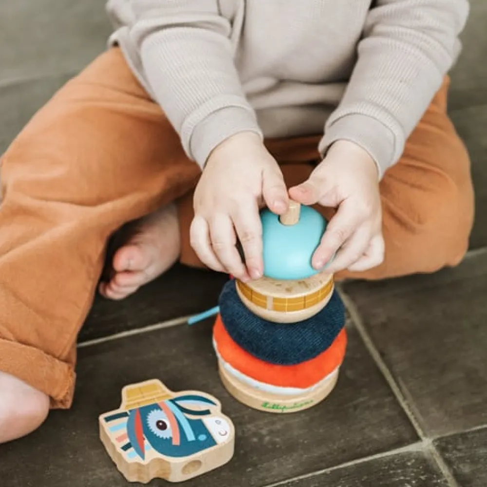Vrolijke stapelpiramide van Lilliputiens om de fijne motoriek te ontwikkelen. Stapel de onderdelen creatief op elkaar tot je Ignace de aap compleet hebt opgebouwd.