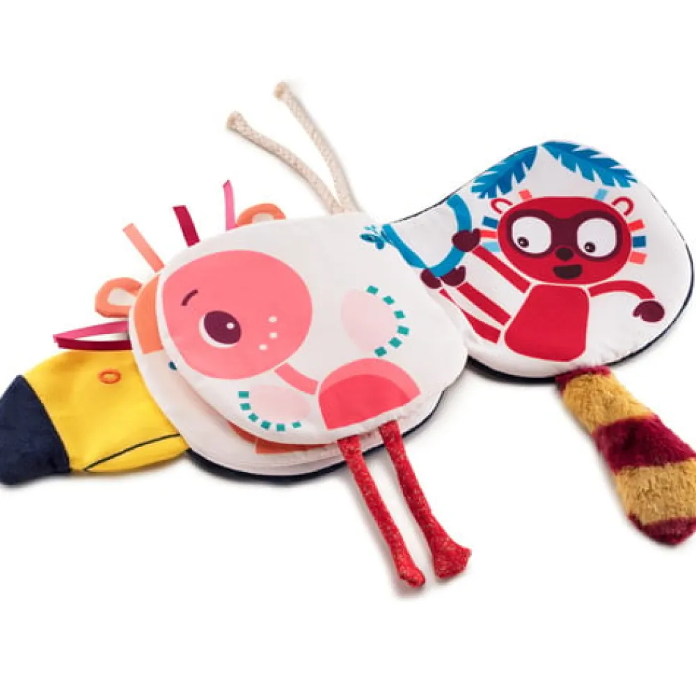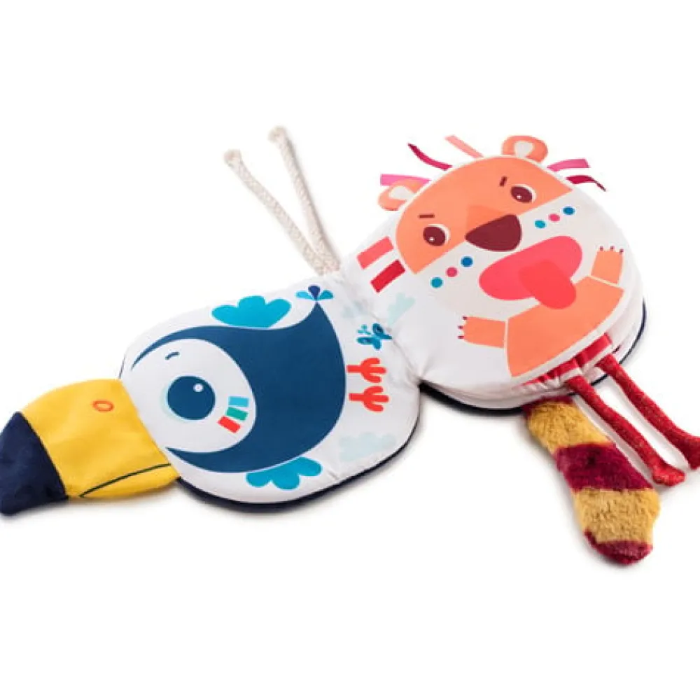 Wie verbergt zich achter Pablo de toekan van Lilliputiens? Als je dit voelboekje doorbladert dan ontdek je allemaal nieuwe dingen; zoals een staartje om aan te voelen en verschillende touwtjes.