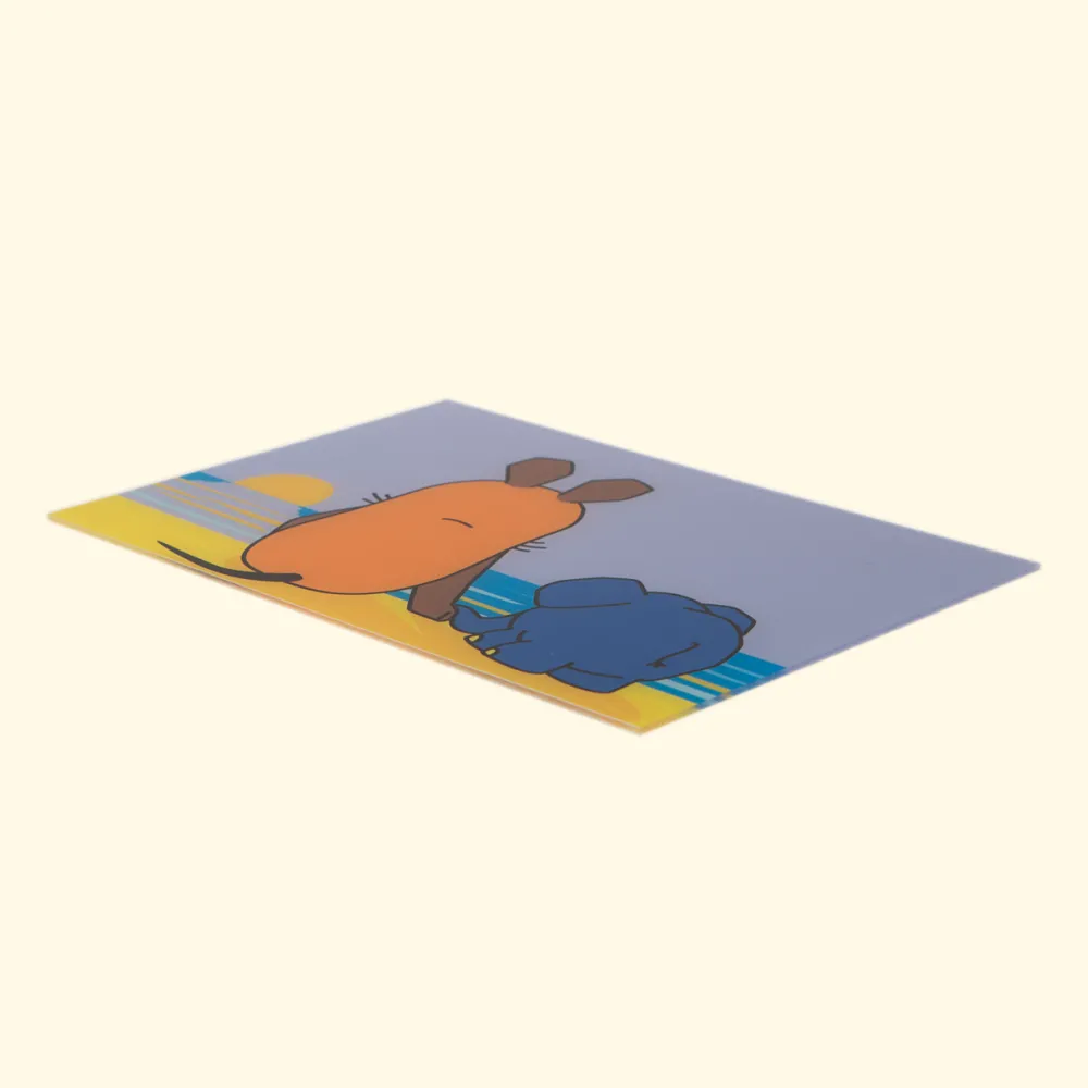 Een motief van de muis en de olifant die naar de zonsondergang aan het kijken zijn. Dit motief is een acrylaat plaat die veilig is voor de kinderen doordat het veel steviger is dan glas. Dit motief past bij de rechthoekige lampen van Limundo.