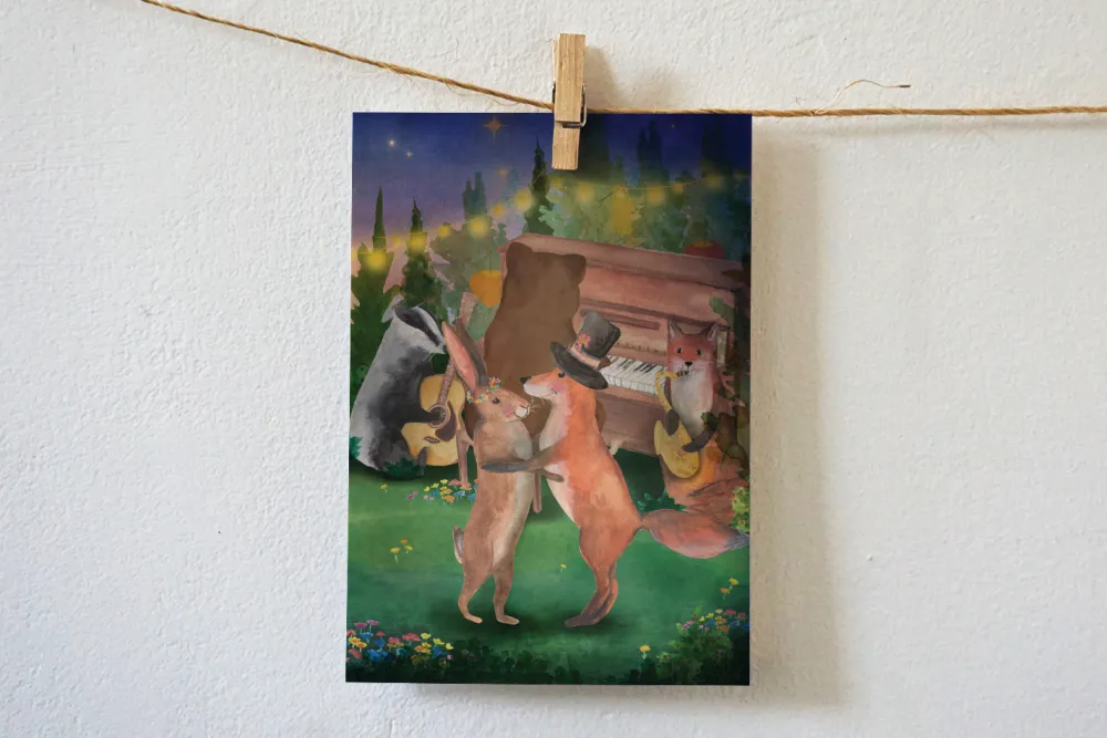 Lekker picknicken samen met bosdieren! Een betoverende wenskaart die het leven viert door aan te schuiven bij deze heerlijke picknick. Er is altijd wel een goede reden te bedenken om een mooi kaartje te sturen!