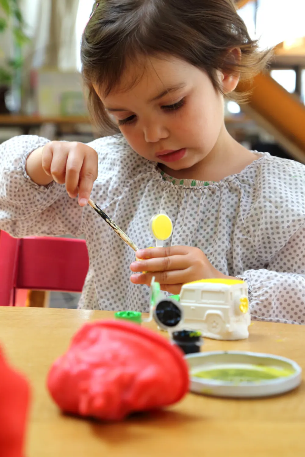 Inhoud: 6 latex mallen (krokodil, nijlpaard, zebra’s, apen, 4×4, leeuwin en haar welpen), 1 hersluitbare zak met rits van 800 g gips, 6 potjes verf 5 ml: zwart, groen, wit, blauw, geel, Rood. 8 afstandhouders, 1 penseel, 1 spelgids en 1 speldecor