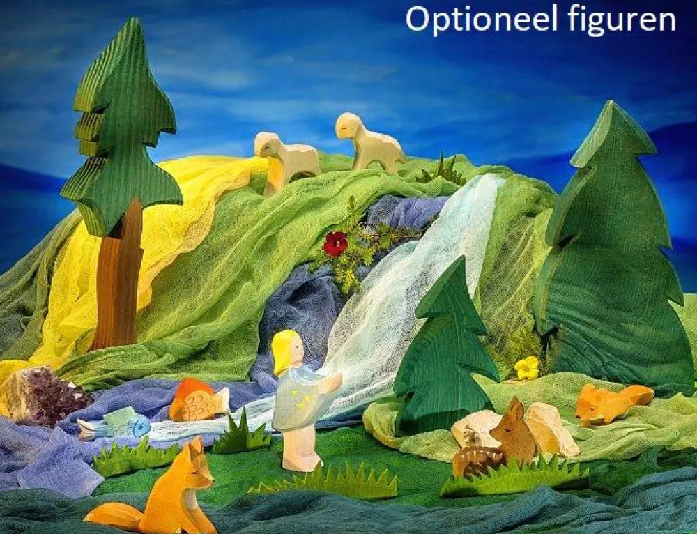 De foto’s geven een indruk welke scene je kunt maken met de decoratie doeken. De figuren zijn optioneel en ook leverbaar in onze webshop.