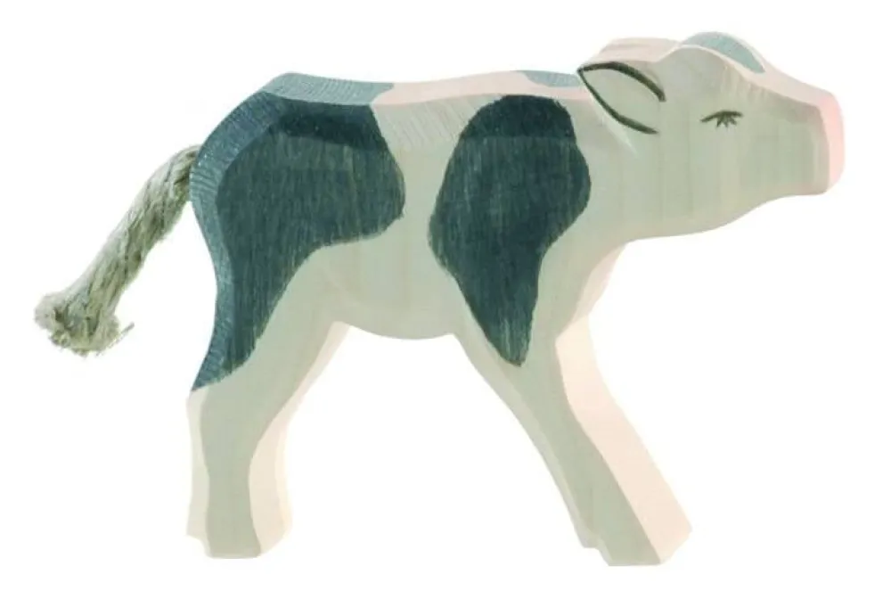Dit zwart gevlekte kalf staat lekker bij moeder de koe te drinken. Een leuke combinatie is samen met de koe 11043. Hoogte: 7cm