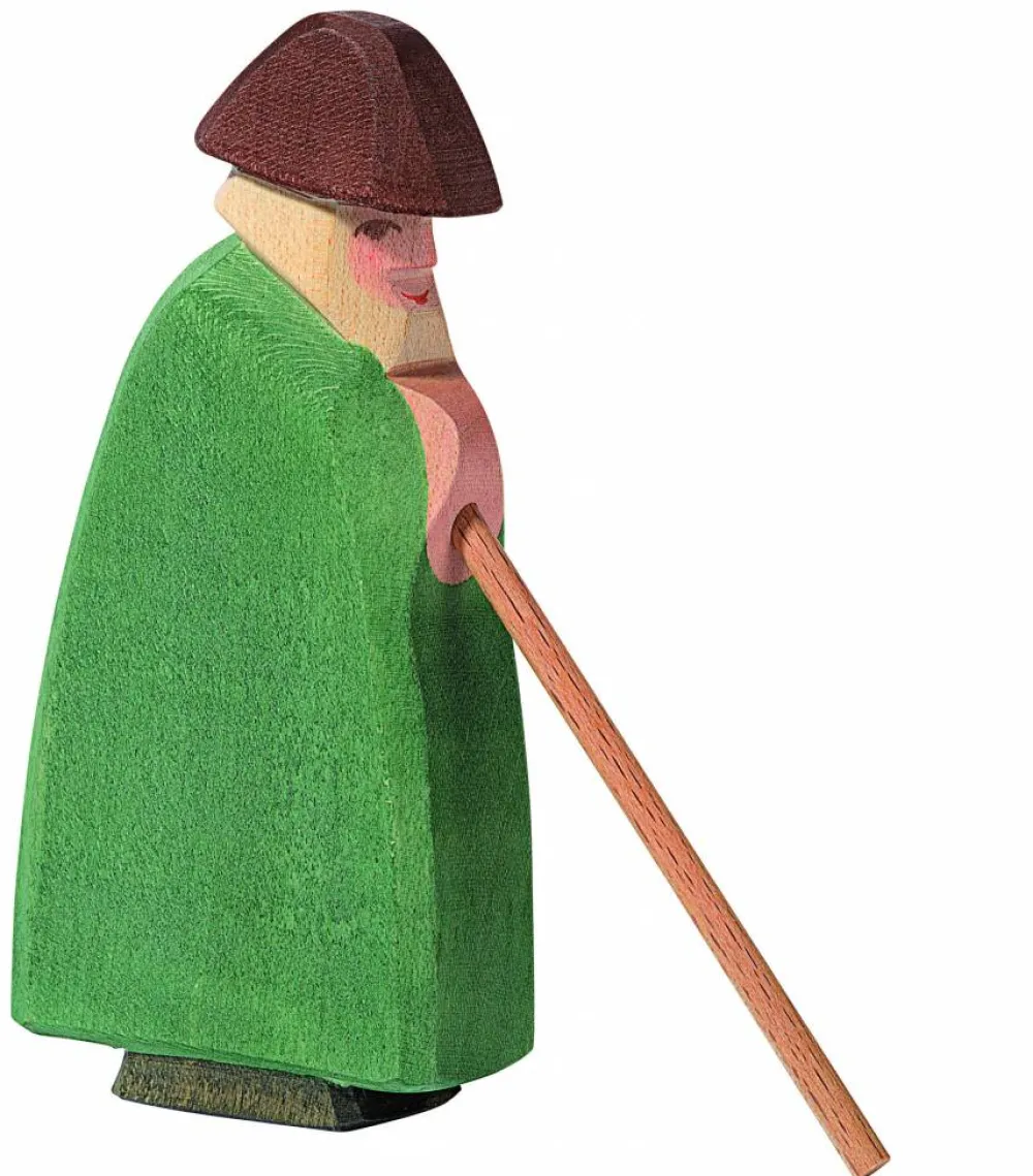 Maak je eigen schapenboerderij compleet met de houten dieren en figuren van Ostheimer, daarin mag de schaapherder die een stok in zijn hand heeft om de schapen te leidenzelfnatuurlijk niet in ontbreken. Hoogte: 14cm
