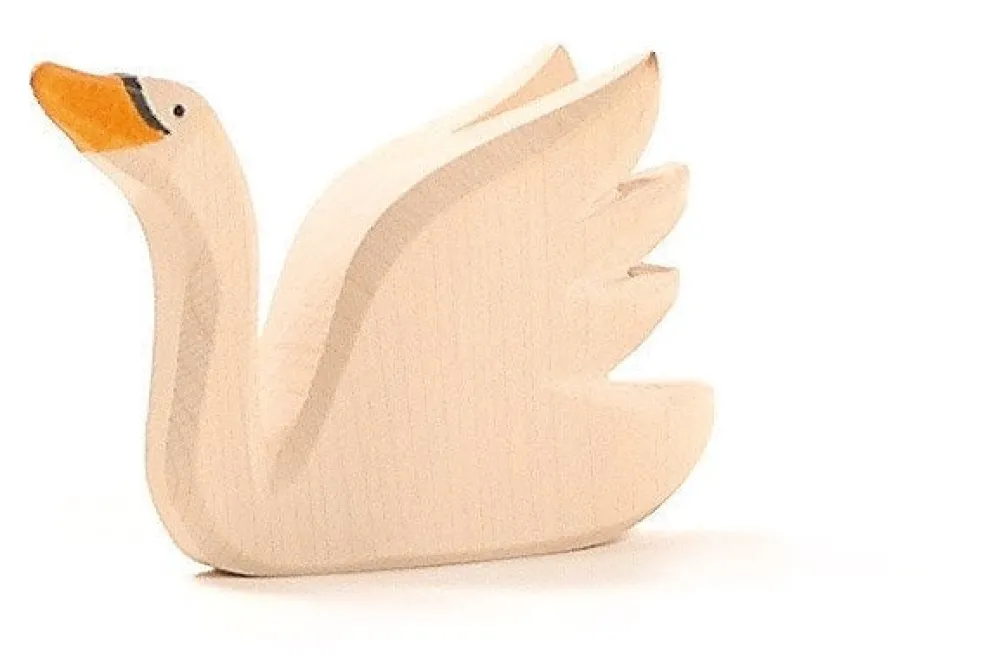 Deze zwaan kijkt omhoog en heeft de vleugels hoog staan. Deze zwaan komt uit de reeks bos- en velddieren van Ostheimer. Hoogte: 6.5 cm