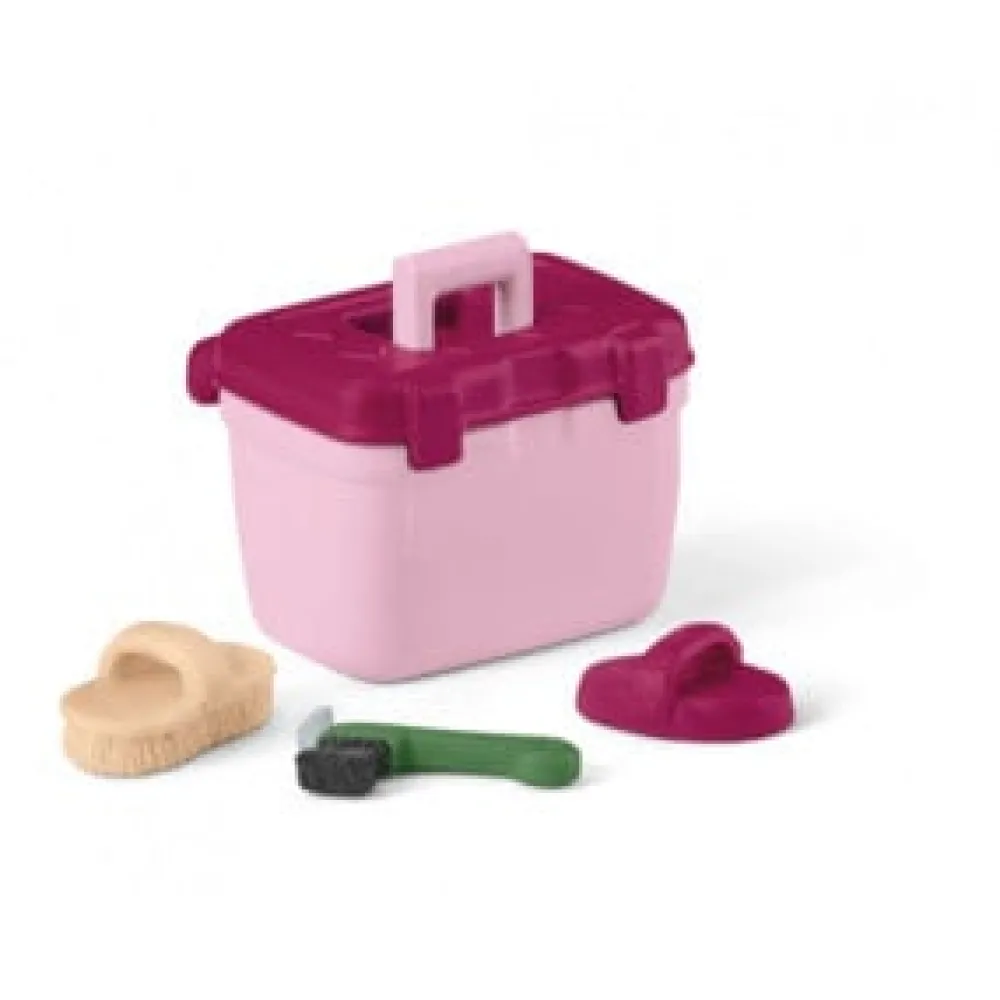 Dit is de paardenverzorgingsset van Schleich en komt uit de serie Horse Club. De set bestaat uit een opbergmandje met drie toebehoren zoals een borsteltje.