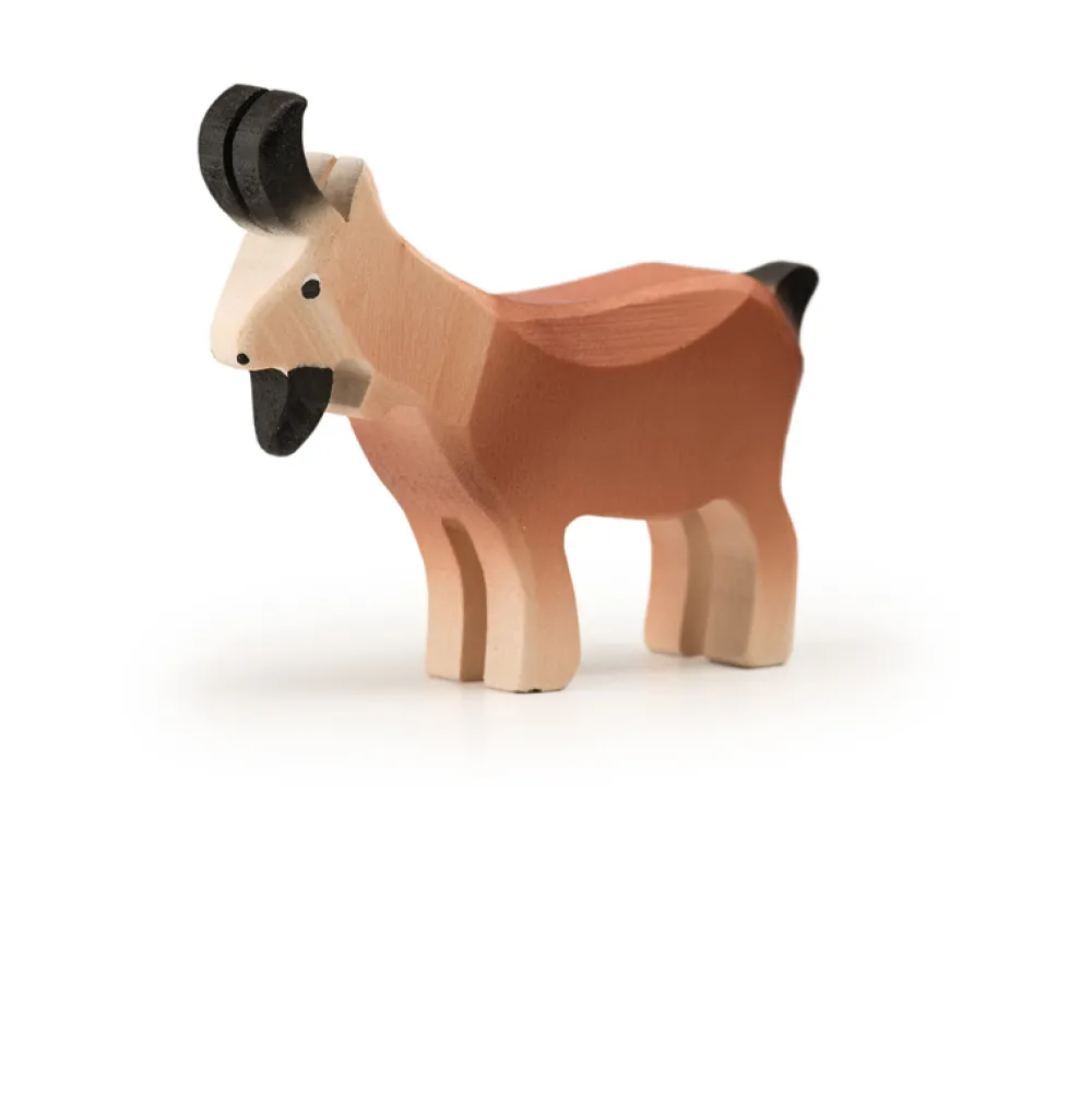 Deze geitenbok van Trauffer staat rechtop en is met de hand gemaakt van lindehout in Zwitserland, de gebruikte verf is vrij van chemicaliën. De bok is robuust genoeg om mee te spelen. Hoogte: 8 cm.
