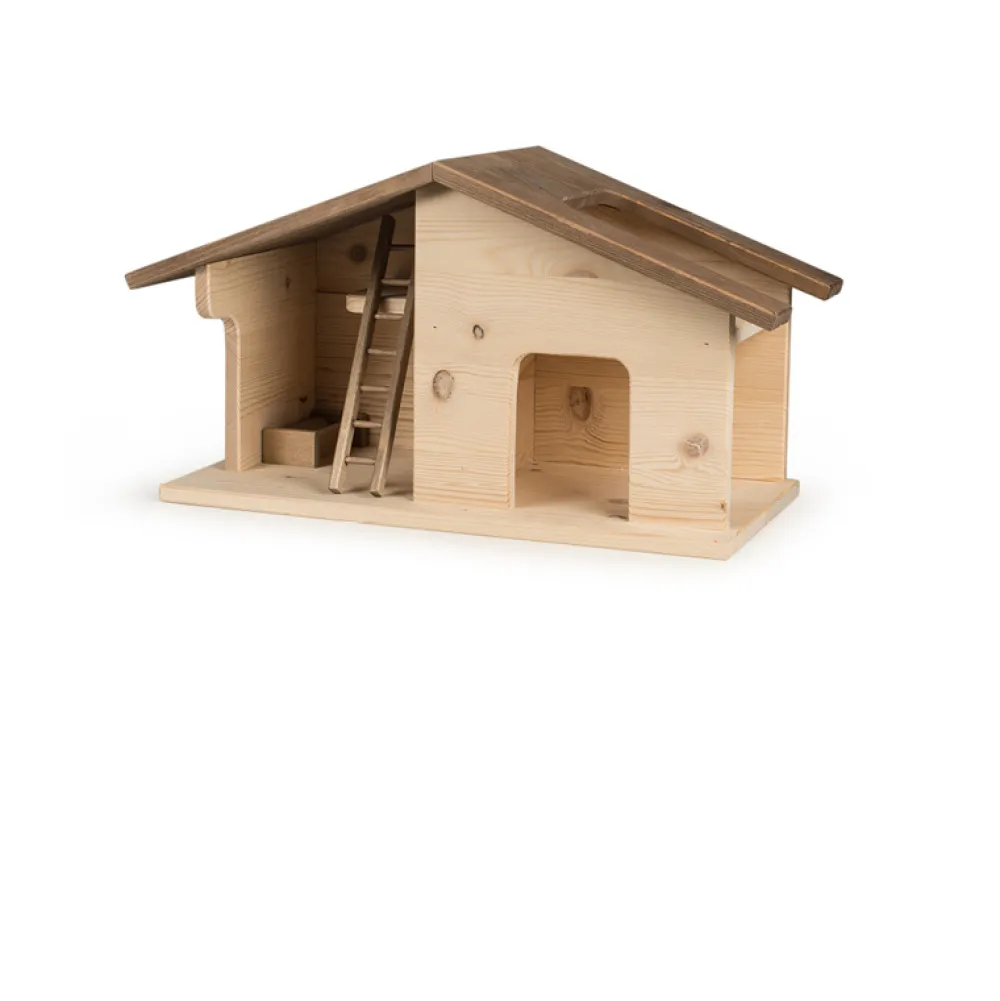Een echte boer heeft niet alleen een trekker nodig maar ook een stal. Deze van Zwitsers hout gemaakte stal van Trauffer is voorzien van een bruin gekleurd dak en een ladder om naar de zolder te gaan. De stal is 52 cm breed.
