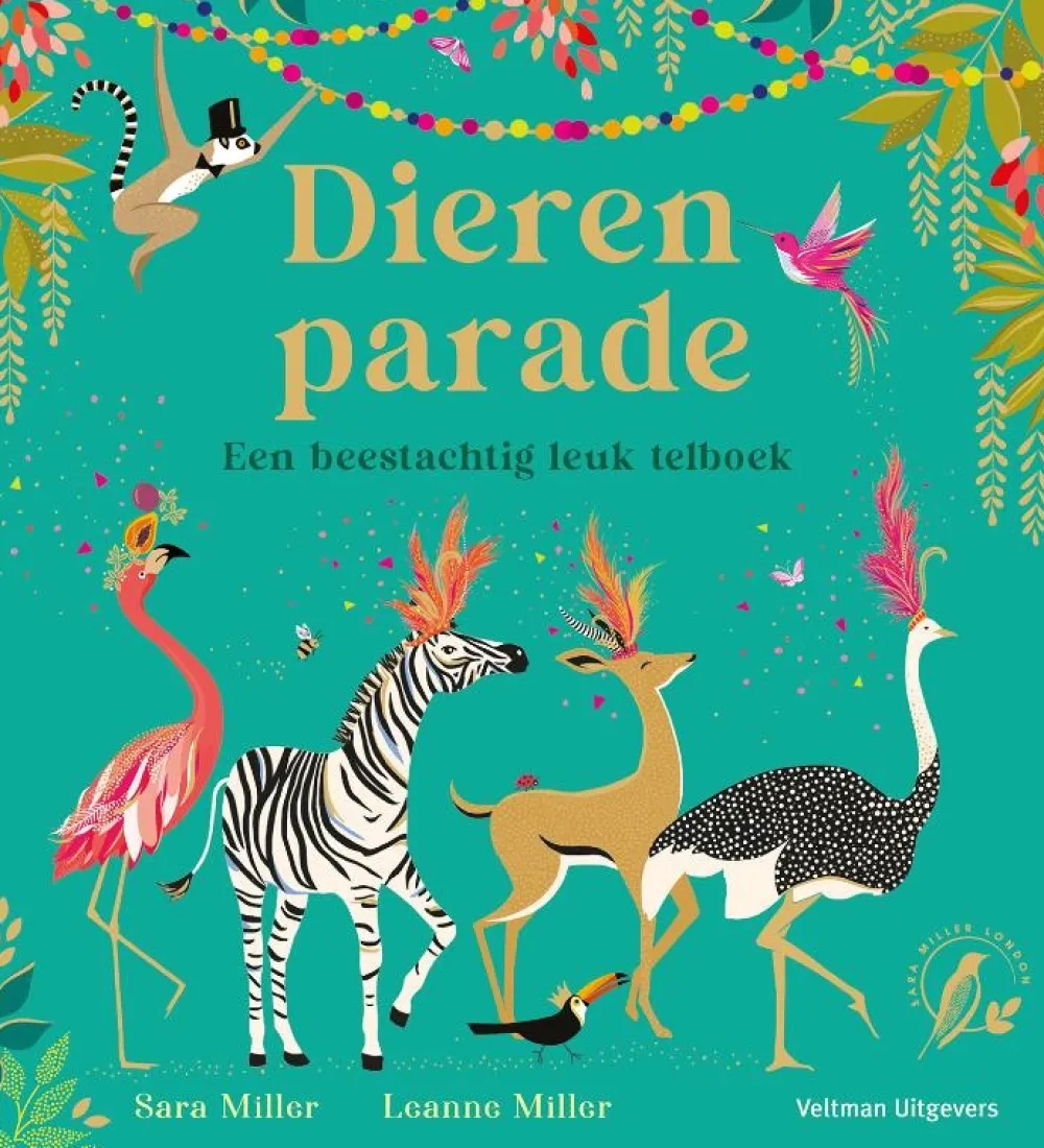 Dit is de DIERENPARADE! Doe je mee? Geschreven door Leanne Miller en geïllustreerd door haar zus, Sara Miller, oprichter van het bekroonde lifestylemerk Sara Miller London.