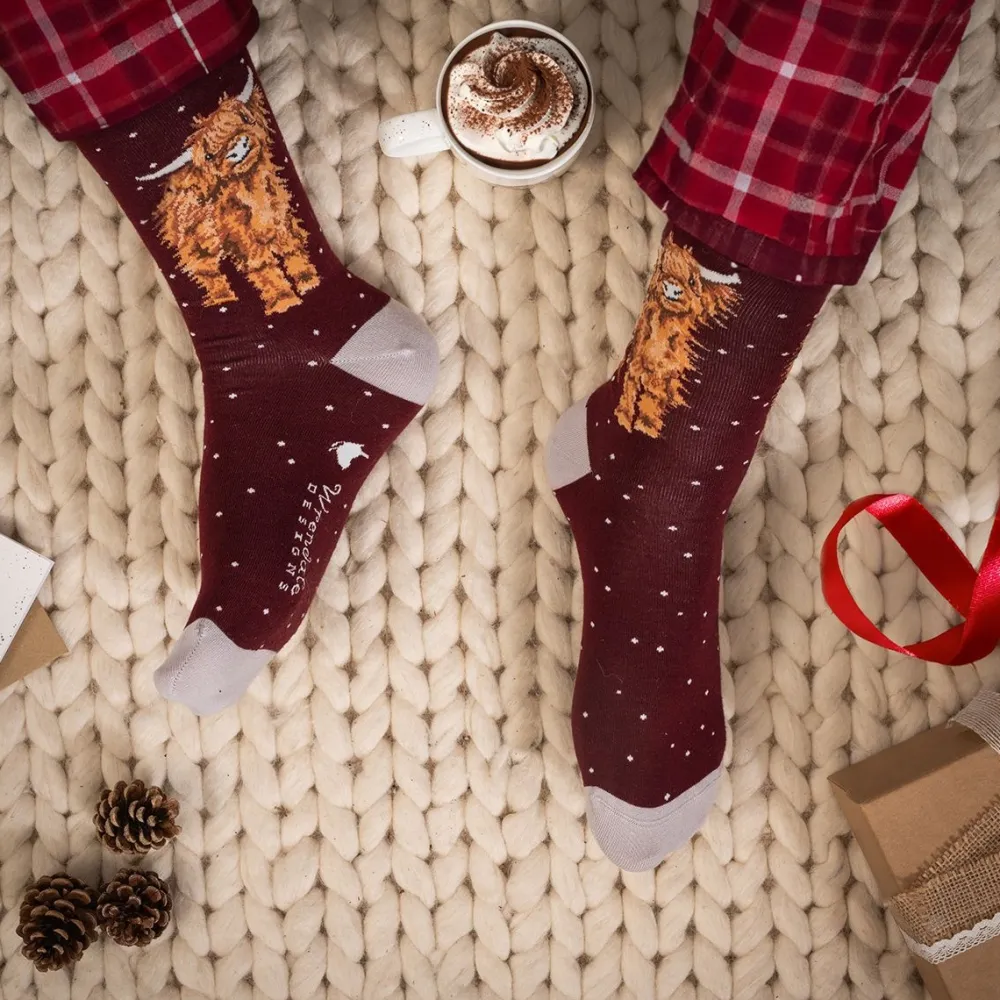 Wrendale Designs Kerstsokken Man A Highland Cow