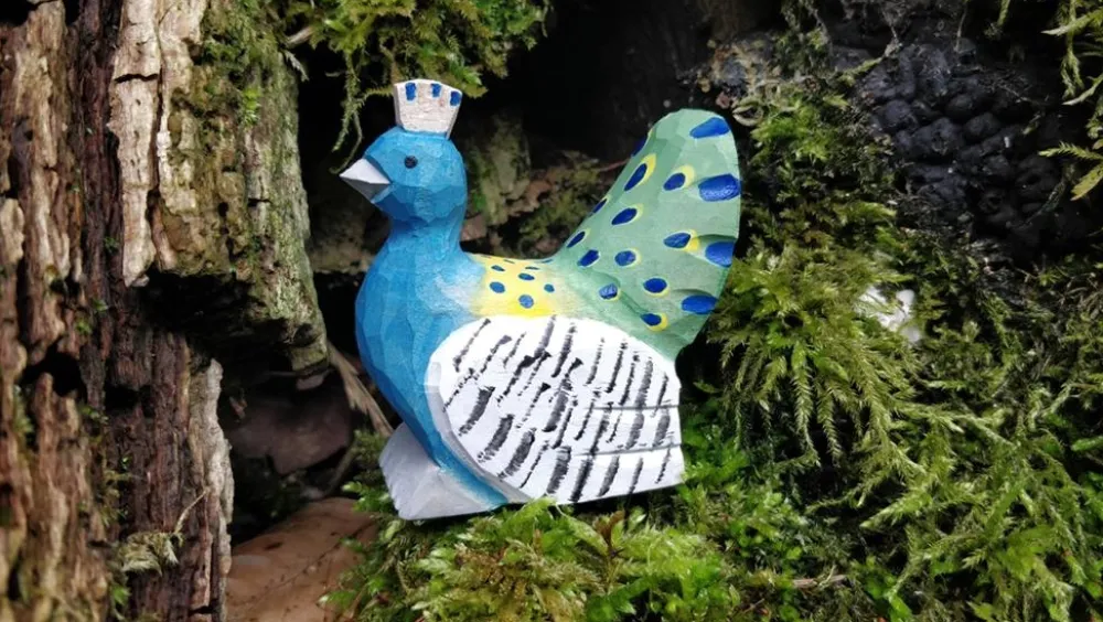 Deze Pauw van wudimals is 5,5x3x6cm groot