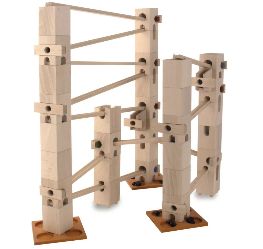 Het meest bijzondere cadeau wat je iemand kunt geven is deze 96 delige muzikale knikkerbaan van Xyloba. Er zijn oneindig veel mogelijkheden en uitbreidingsmogelijkheden. Dit is de basisset Orchestra, gemaakt in Zwitserland van inlands geteeld beukenhout.