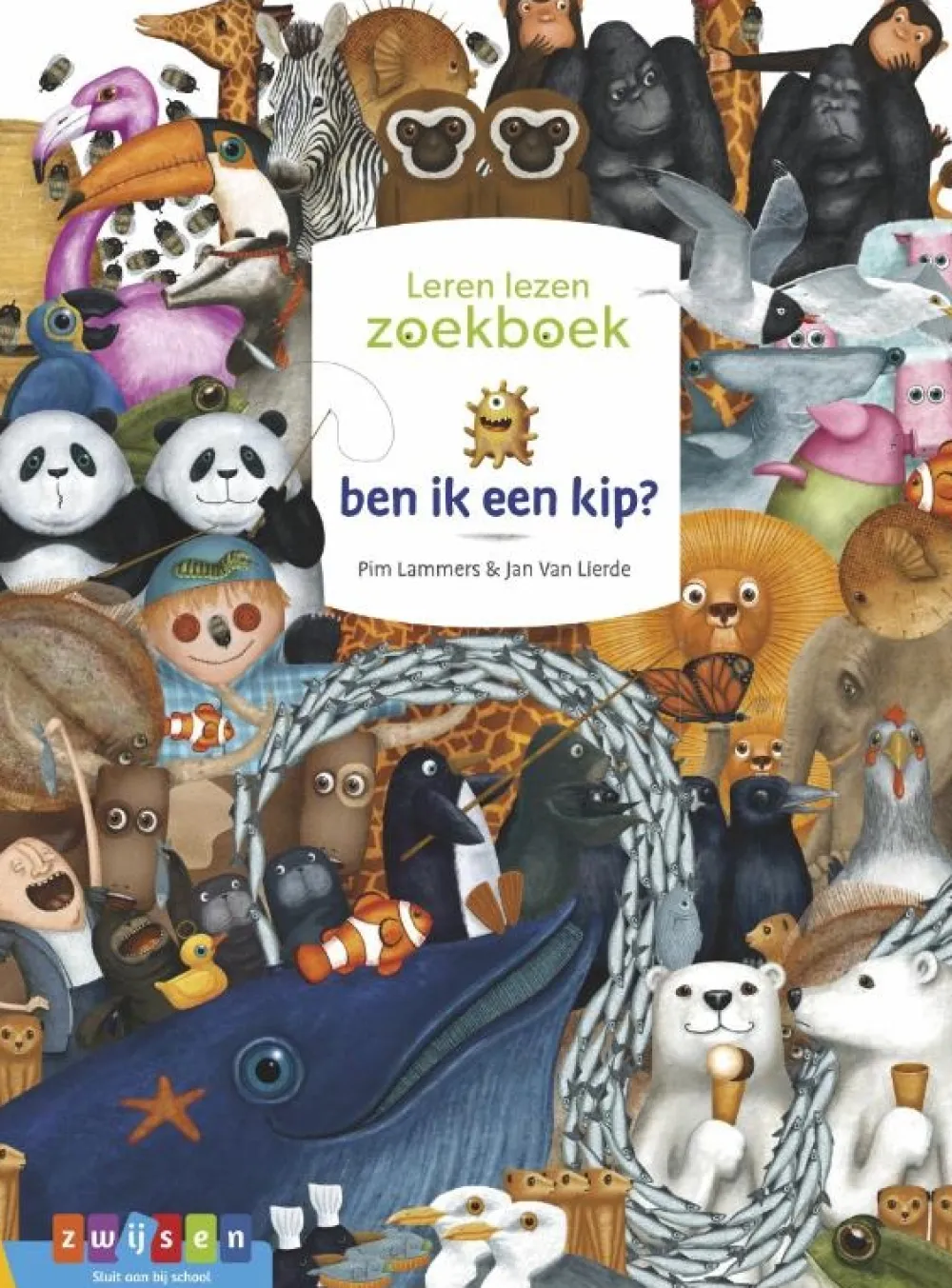 In de volle illustraties zijn niet alleen veel dieren verstopt, maar ook heel veel woorden. Het zijn de woorden die kinderen leren op school: kim, ik , maan, vis, roos, en nog veel meer. Je blijft kijken in dit boek. En lezen. Eenvoudiger dan AVI start, maar je moet wel goed speuren. Dat maakt dit boek leuk én uitdagend.