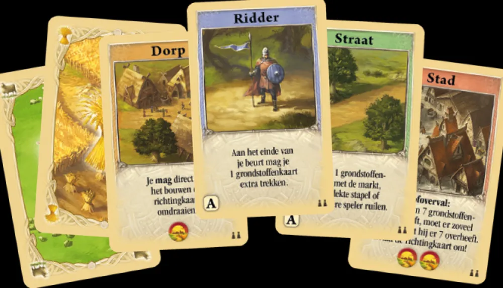 Ook in dit kaartspel bouw je straten, dorpen en steden en zet je ridders in. Steden kunnen op verschillende manieren worden uitgebreid. Verder kun je met de andere spelers of met de markt en de gedekte stapel grondstoffen ruilen. Maar pas op: je straten en ridders kunnen zomaar door de andere spelers afgepakt worden. Zo zijn ook behaalde overwinningspunten niet altijd zeker. Het bouwen van een kerk of een stadsmuur kan echter bescherming bieden!