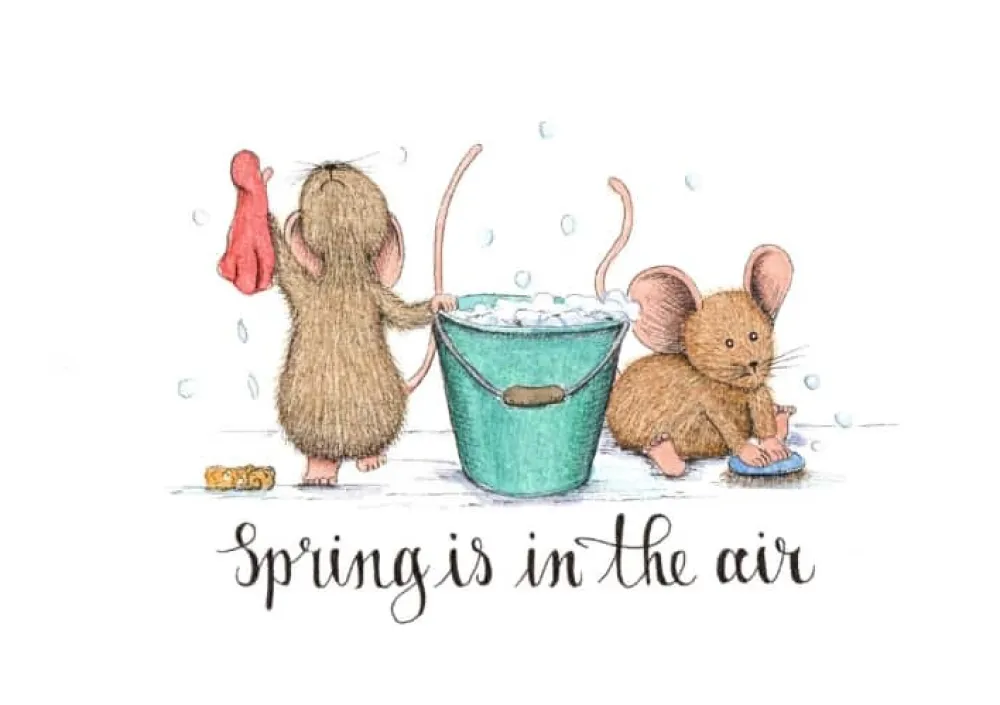 Anillustration Ansichtkaart Poetsmuisjes voorjaar