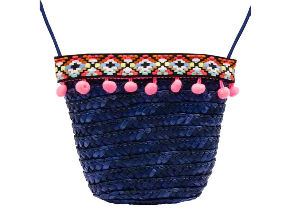 BB Klostermann Schoudertas met Roze Pompons Blauw