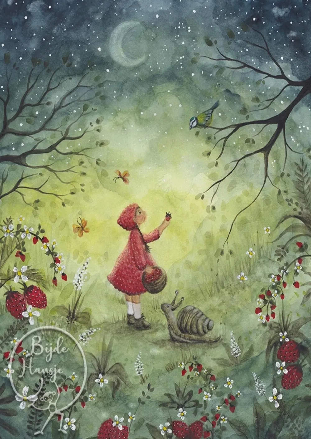Bijdehansje Postkaart strawberry dream
