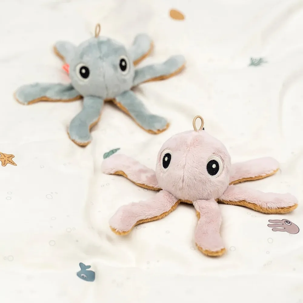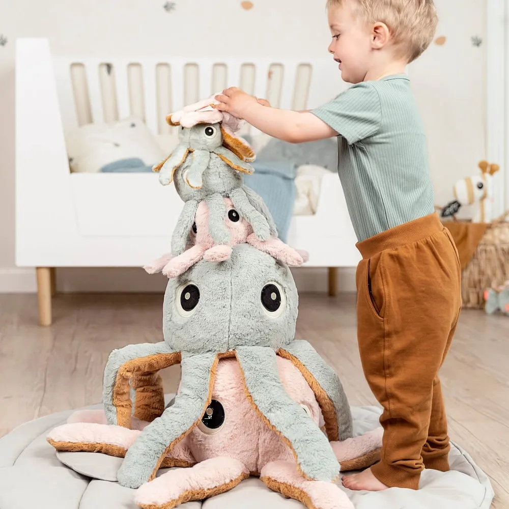 Jelly is een altijd behulpzame vriend die altijd klaar staat om je een hand te geven. Deze inktvis en rammelaar is een perfect eerste speeltje met zintuiglijke kenmerken en zoete geluiden. De knuffelrammelaar van Done by Deer is 7.5×16 cm.