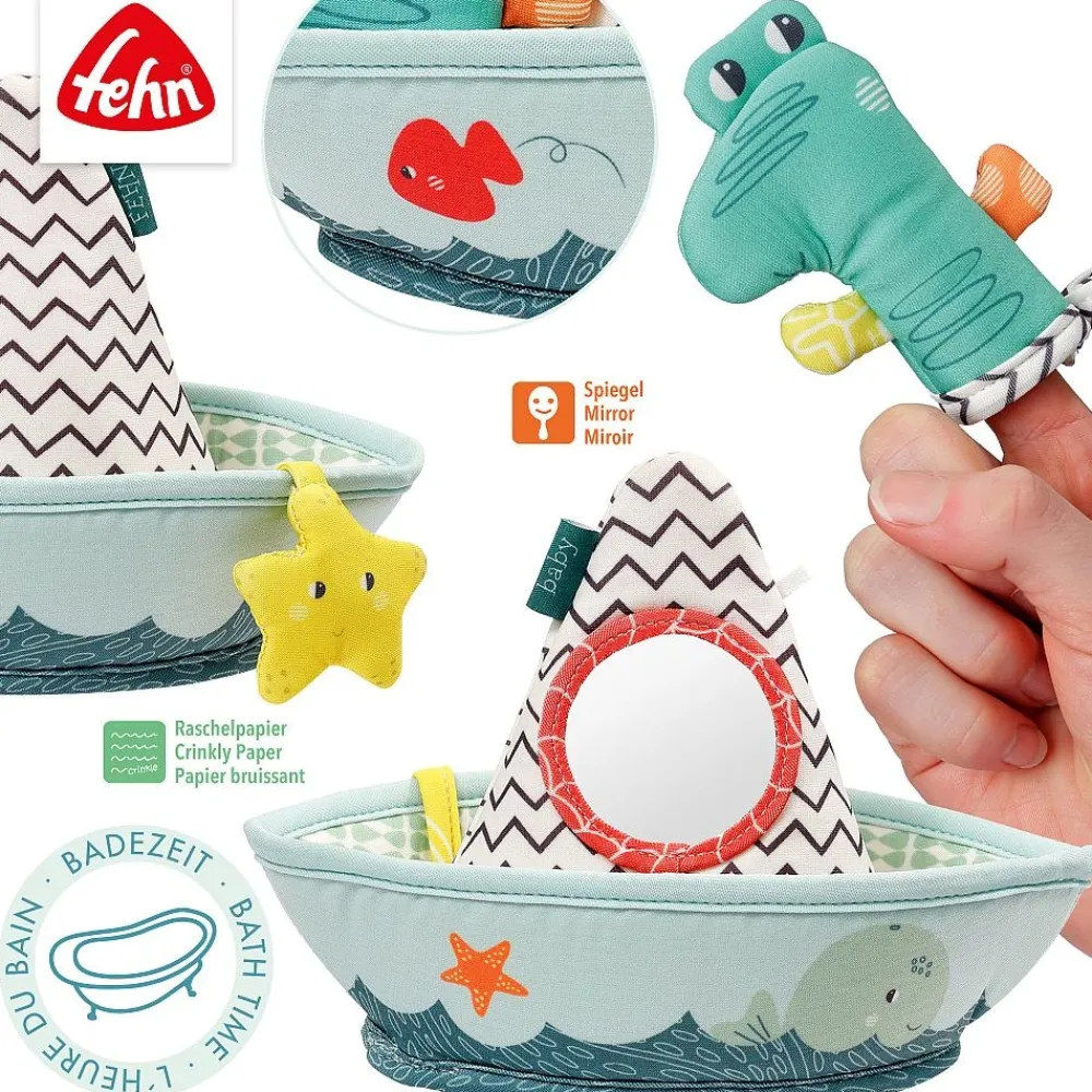 Fehn Badspeelgoed Bootje met Vingerpop Krokodil