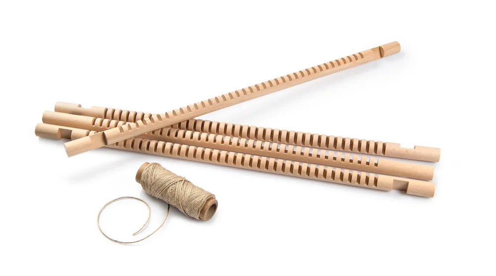 A set made up of 4 dented sticks and hemp thread, perfect for seasonal set-ups or any other creative display activity.