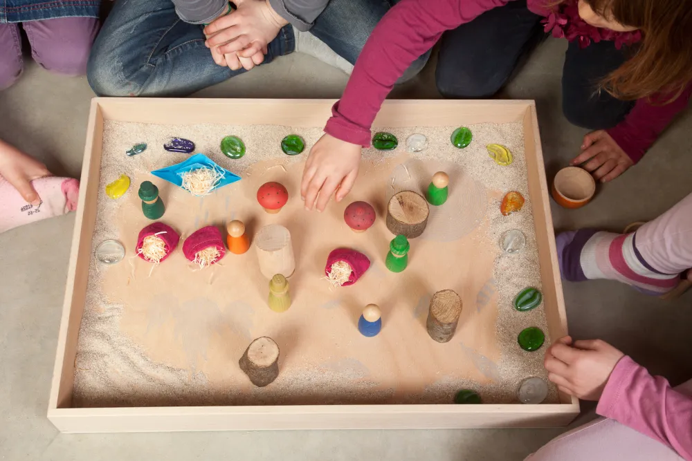 Deze houten kist van Grapat is 45×65 groot en 7 cm hoog. In de box zitten vier handgemaakte en gestempelde natuurelementen.