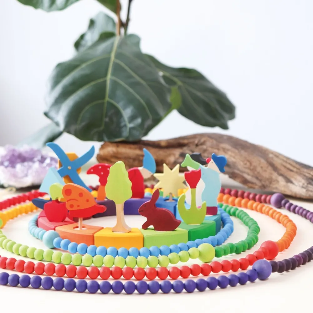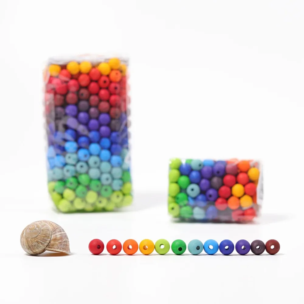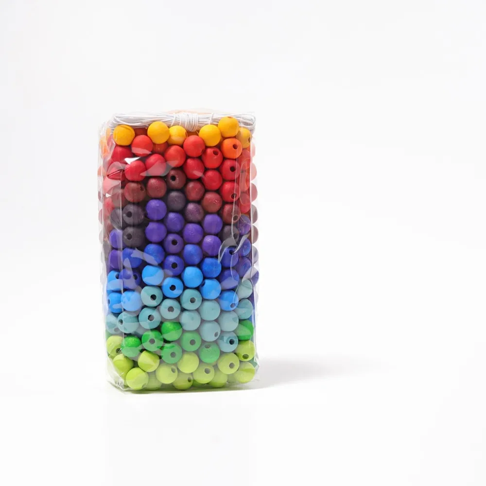 Deze set van Grimm's bestaat uit 480 houten kralen gemaakt van esdoornhout. De kralen zijn geschikt voor kinderen vanaf 4 jaar en hebben een doorsnede van 12mm.