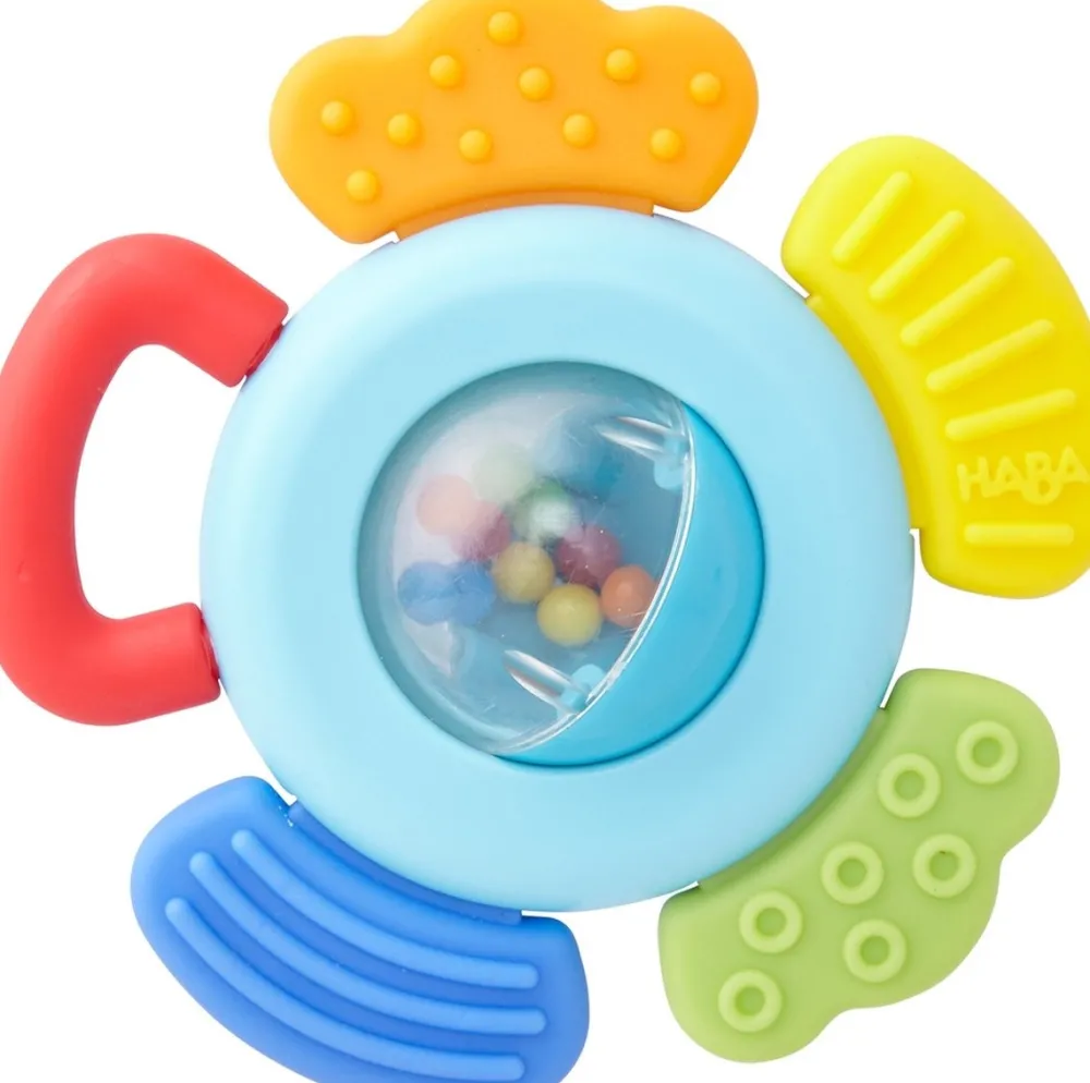 Deze leuke rammelaar fascineert baby’s met boeiende rammelgeluiden.