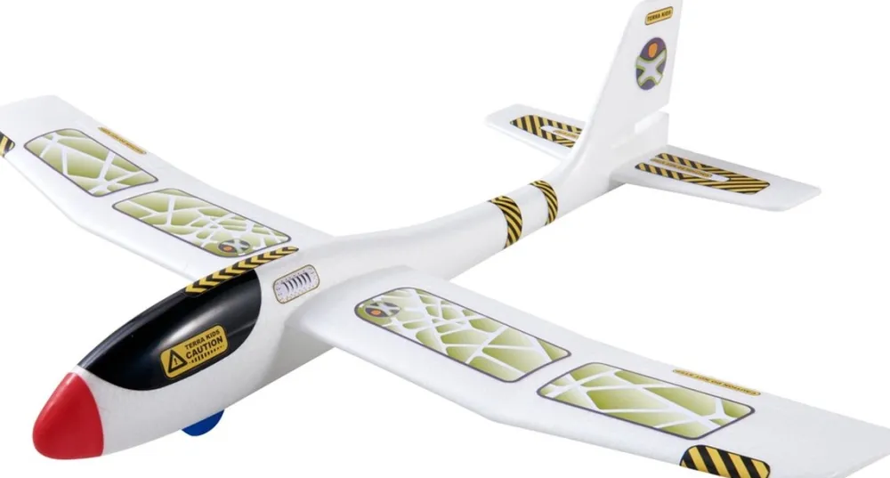 Speelplezier in een loop: neem het vliegtuig bij de romp onder de vleugels tussen de duim en de wijsvinger vast, lanceer het met een grote zwaai en laat het snel en sierlijk door de lucht zweven.