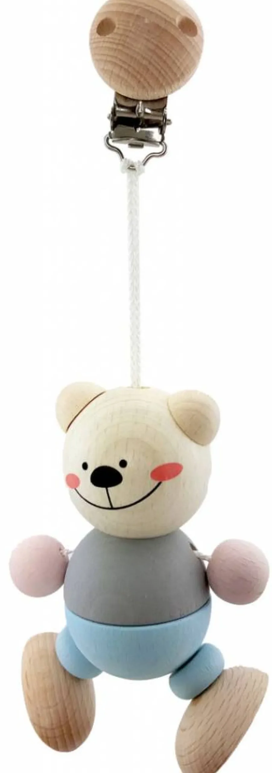 Dit houten clipfiguurtje van Hess kun je gemakkelijk bevestigen aan de kinderwagen, box en bed of aan de kleding. Dit lieve beertje is in pastelkleuren uitgevoerd.
