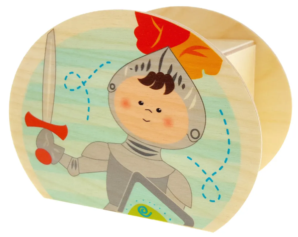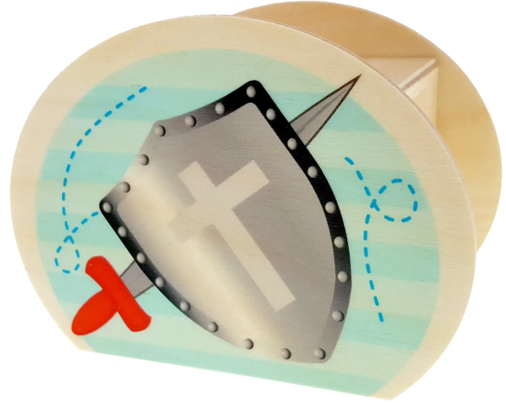Een spaarpot die met de hand gemaakt is van hout. Deze spaarpot van Hess heeft een stoere ridder aan de ene zijde en aan de andere zijde zijn zwaard en schild als motief. Leuk om te geven of te ontvangen.
