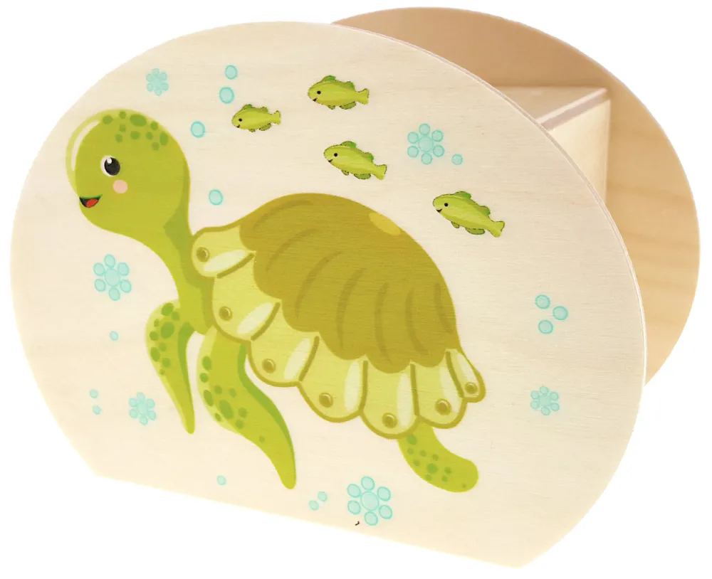 Een spaarpot die met de hand gemaakt is van hout. Deze spaarpot van Hess heeft aan beide zijden afbeeldingen van dieren die in de zee voorkomen zoals een schildpad en een haai. Leuk om te geven of te ontvangen.
