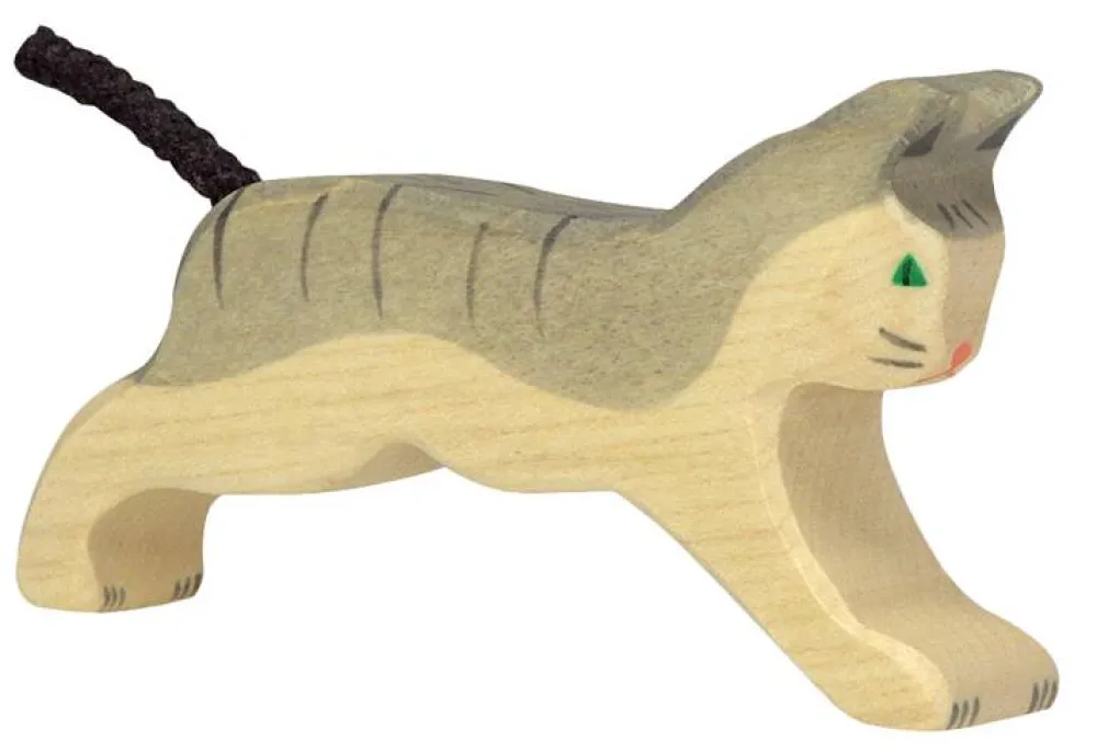 Maak je eigen boerderij met de figuren en dieren van Holztiger en daar mag deze kat niet in ontbreken. Deze houten kat wil een sprong gaan nemen en heeft zijn poten uit elkaar staan. Afmeting: 11×1.9×6 cm