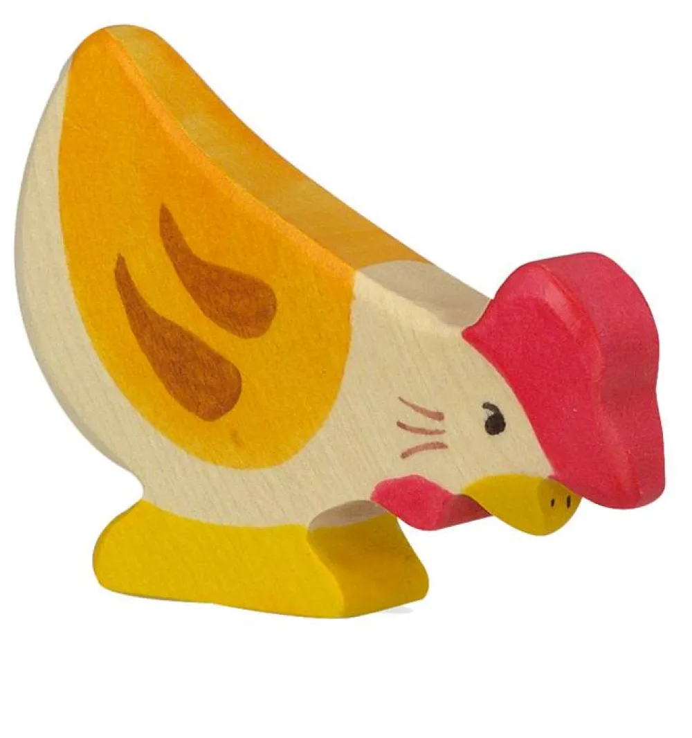 Maak je eigen boerderij met de houten figuren en dieren van Holztiger en daar mag deze kip niet in ontbreken. Deze kip is voer aan het pikken van de grond. Afmeting: 8×1.9×6.5 cm