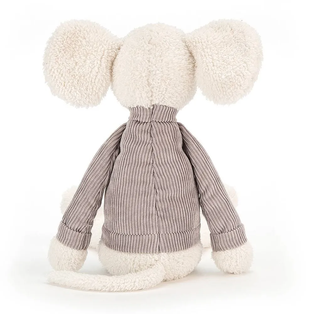 Knuffel muisJumble Mouse van Jellycat is klaar voor een wandeling, maar hij weet ook nu het kouder wordt dat hij zich goed moet aankleden. Daarom heeft hij zijn lila coltrui aangedaan. Die staat prachtig bij zijn zachte lichte vacht. Hoogte: 34 cm.