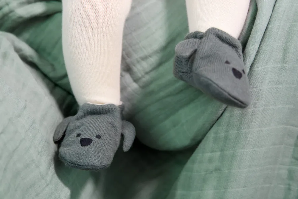De eerste schoenen van LÄSSIG gemaakt van GOTS-gecertificeerd biologisch katoen zorgen ervoor dat de kleine voetjes van de baby warm en gezellig blijven. De babyschoentjes uit de Little Chums collectie zijn eenvoudig aan en uit te trekken dankzij een elastische band, waardoor ze bij uitstek geschikt zijn als baby’s eerste schoenen, tot de leeftijd van 6 maanden. De kleine schoentjes zijn verkrijgbaar in drie verschillende kleuren en zijn versierd met de schattige geborduurde gezichten van een hond, een kat of een muis. Baby’s eerste schoenen zijn machinewasbaar op 86 ° F in de zachte cyclus. De babyschoentjes zijn netjes opgeborgen in de bijpassende stoffen tas van 100% biologisch katoen, met een glanzende print. Net als de kleine schoenen worden ook de stoffen tassen geproduceerd en gecertificeerd volgens de GOTS-richtlijnen (Global Organic Textile Standard). Ze zijn een prachtig cadeau voor een pasgeborene.