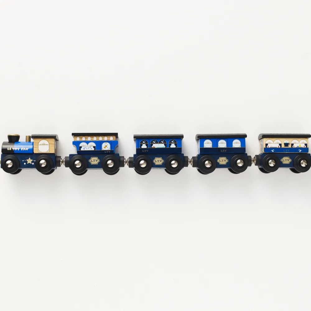 Deze Twilight Train reist door de nacht en vermaakt zijn passagiers. Versierd met prachtige maan- en sterrenmotieven, afgewerkt met goudkleurige verf, is deze klassieke locomotief met 4 wagons voorzien van magneten die ze met elkaar verbinden.