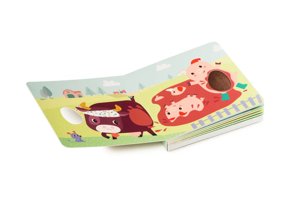 Vertel met dit mooi geïllustreerde kartonnen boekje boordevol geluiden jullie eigen boerderijverhaal. Benoem de dieren en herken de geluiden. Stimuleert het gehoor, de tastzin en de verbeelding.
