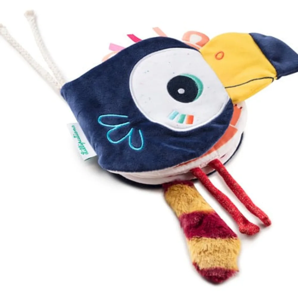 Wie verbergt zich achter Pablo de toekan van Lilliputiens? Als je dit voelboekje doorbladert dan ontdek je allemaal nieuwe dingen; zoals een staartje om aan te voelen en verschillende touwtjes.