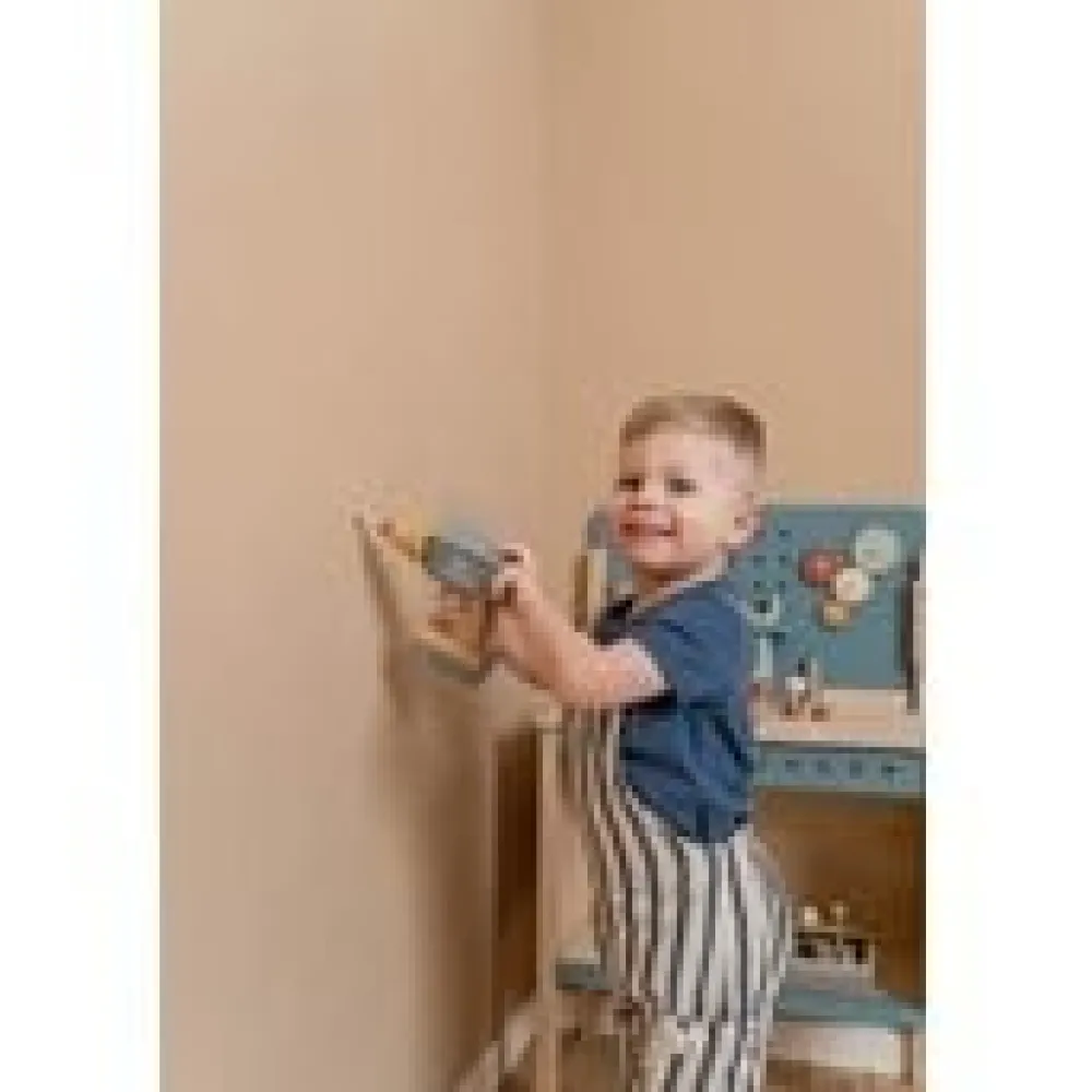 Draai aan het wiel aan de achterkant om te boren. Zo ben je net een echte timmerman! Peuters houden van rollenspellen en kopiëren alles wat hun ouders doen. Deze houten boormachine stimuleert verbeeldingskracht en creativiteit. Daarnaast helpt het de motorische vaardigheden te ontwikkelen wanneer ze de bitjes verwisselen, het wiel draaien en de accu vervangen die met klittenband aan de onderkant is bevestigd. Combineer met de gereedschapsriem en gereedschapskist om uit te breiden tot een volledige set. Of creëer een persoonlijke werkplek voor je kleintje in de woonkamer door de speelgoedboor te combineren met de houten werkbank. Afmeting: 15,3x5x15,4 cm